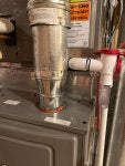 PVC nearly touching the single wall exhaust from the furnace. PVC is combustible isn't it? Shouldn't there be at least 6"?
